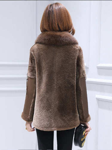 Double Faced Fur Coat Female Natural Wool Fur Coats Winter Jacket Women Fox Fur Collar Genuine Leather Jacket MY4081